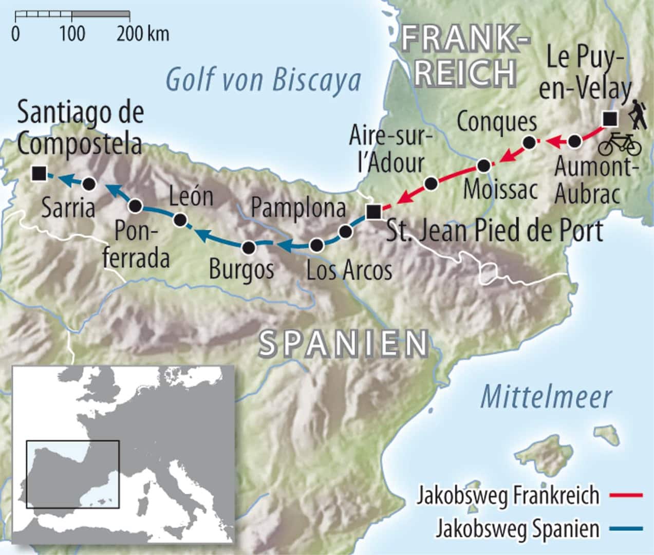 Wandertour Jakobsweg Frankreich und Spanien Kombination