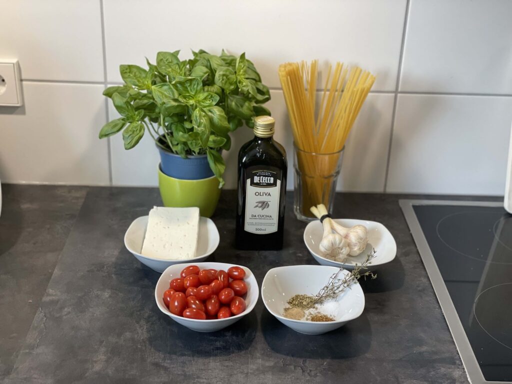 Wer kennt es nicht? Nach einem langen Arbeitstag oder in der Mittagspause im Homeoffice, hat man einfach keine große Lust etwas aufwendiges zu kochen! Für alle, die wenig Zeit haben, aber trotzdem einen großen Wert auf eine gesunde Küche legen, haben wir hier die Lösung. Mit dem Kirschtomaten – Feta Spaghetti „One Pot“ Rezept haben wir ein tolles Gericht für die ganz schnellen. Mit eine Zubereitungszeit von 5 Minuten nicht zu toppen, das natürlich auch noch gesund ist und die nötige Power gibt. Das Wichtigste ist, es kommt nicht aus der Tüte bzw. ist kein Fertiggericht, sondern mit frischen Zutaten, die jeder Zuhause hat.