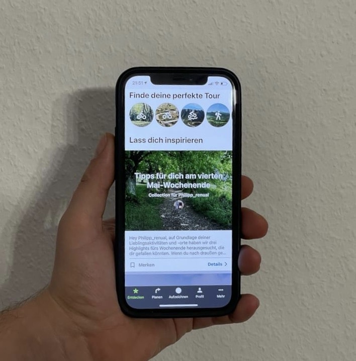 Für die spontane Tour zwischendurch, empfiehlt sich die Smartphone App. Hier könnt Ihr in wenigen Minuten eure Tour planen. Das Wichtigste ist, dass die Komoot App meist die stark befahrenen Straßen (Autoverkehr) meidet und oftmals auf Radwege oder kleinere Straßen umleitet.