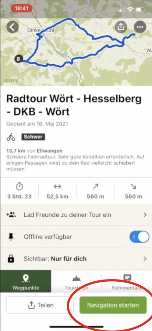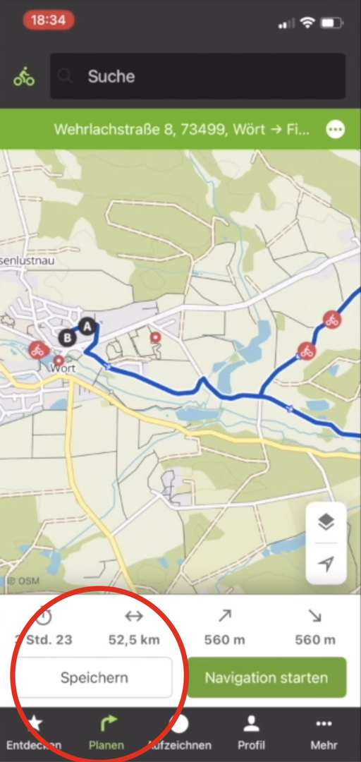 Fahrradtour auf der Komoot Smartphone App planen, Step by Step Beschreibung: