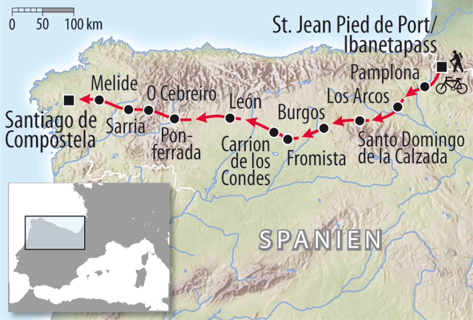 Wandertour Jakobsweg Frankreich und Spanien Kombination
