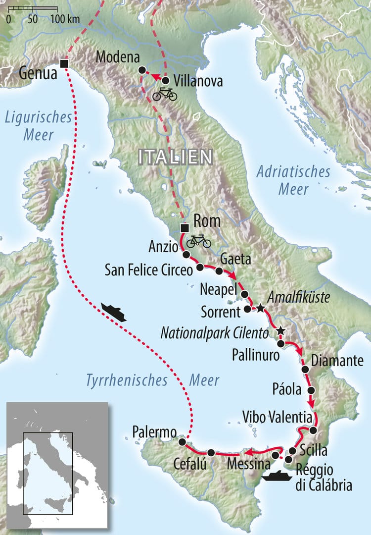 Mit Amalfiküste - Costa Viola - Sizilien mit dem Rennrad in Italien