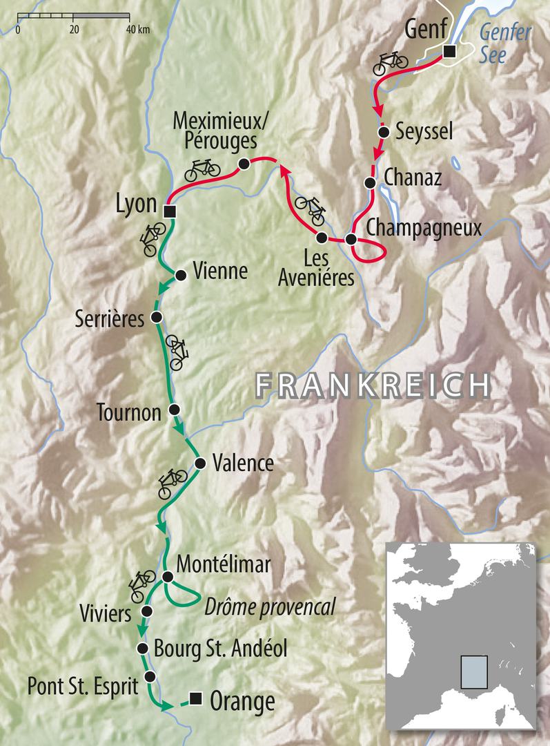 Oder Sie machen noch den 2. Teil als Anschlusstour. Rhoneradweg von Lyon nach Orange.